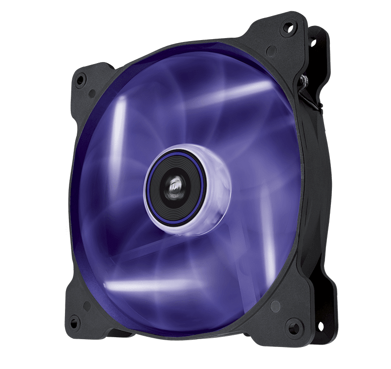 LED-Gehäuselüfter der Corsair Air Series mit hohem statischem Druck kombinieren effiziente starke Luftströmung mit eindrucksvoller LED-Beleuchtung. Dies sind Spezialanfertigungen, die Hochtemperatur-Komponenten bei geringerem Rauschen und mit weniger Turbulenzen direkt mit Luft versorgen. Die speziell modellierten Blätter sind lichtdurchlässig mit bereifter Struktur und erzeugen durch das Licht der vier LEDs einen dramatischen Effekt.