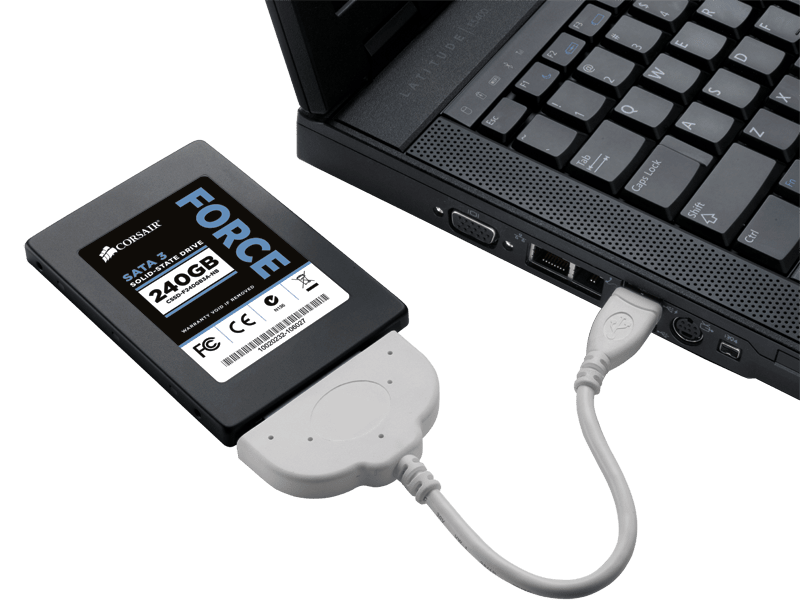 The included USB-to-SATA cable connects to your notebook's USB 2 or USB 3 port. Insert the included disc into your optical drive, run the software (it's compatible with both Windows and Mac OS X), and it will copy the entire contents of your hard drive to your new SSD. You won't need to reinstall your operating system or applications.
