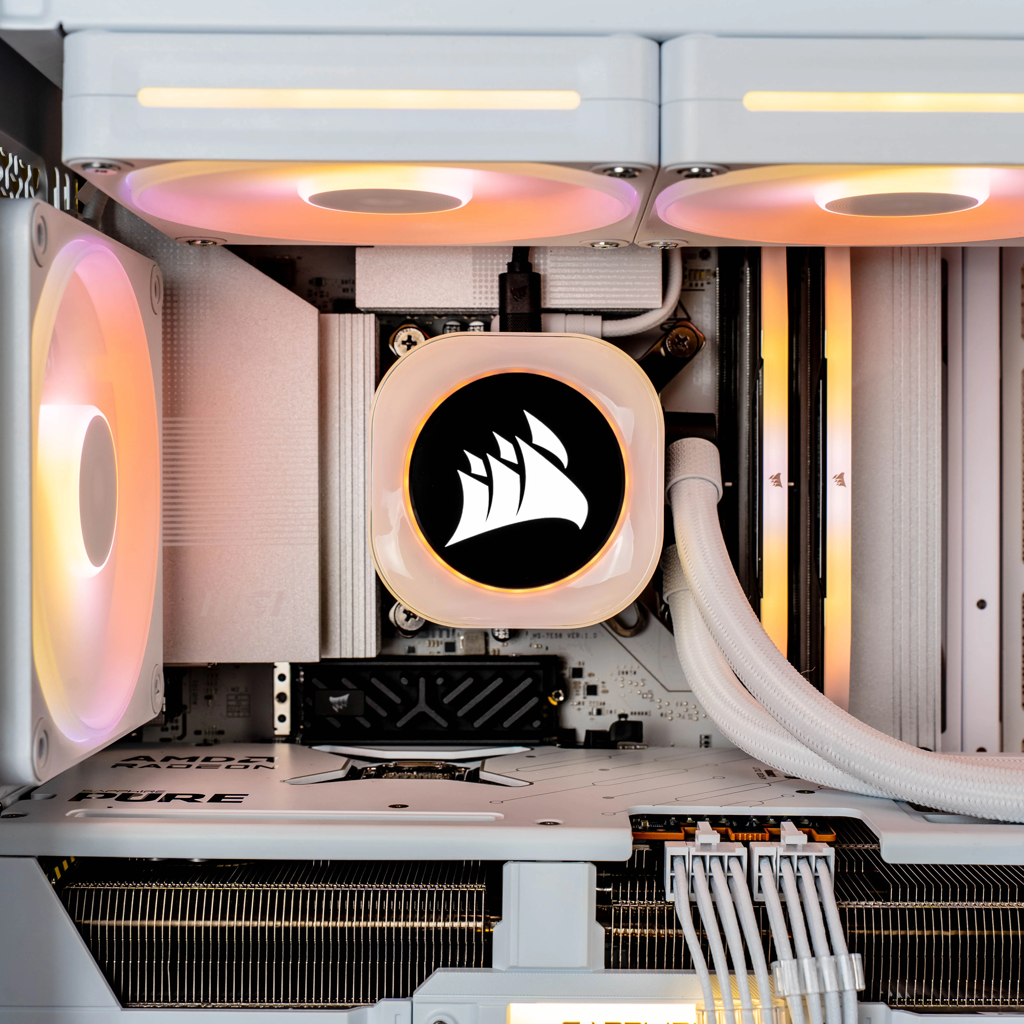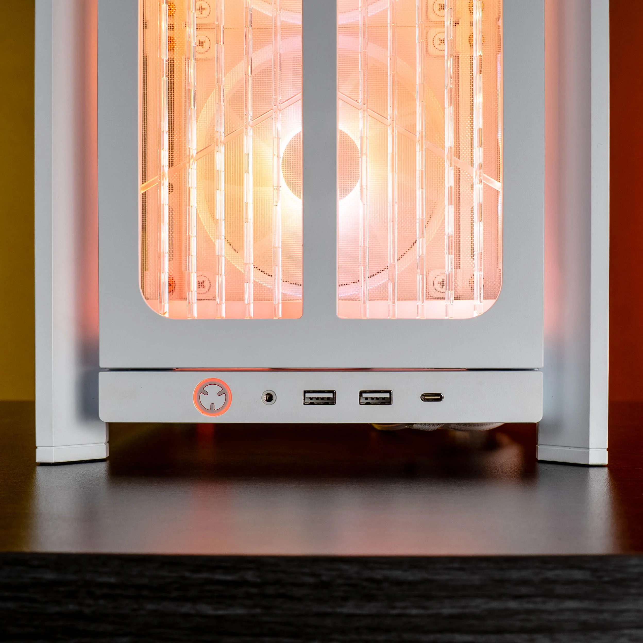 The white FRAME 4000X is a beautiful sight to see, as this case's front panel lighting brightly bounces off its finish. The ARGB power button is a subtle touch, but allows for another level of custom lighting that is well appreciated.