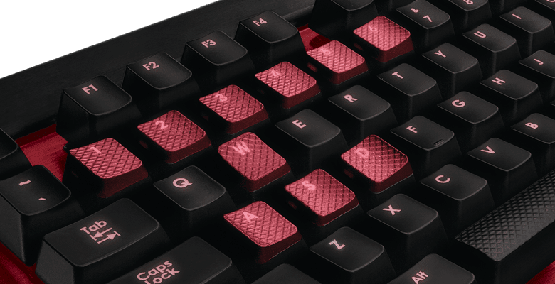 Each key is contoured, textured, and soft to the touch, for easy identification by touch and exceptional grip during the most intense gaming action. The red accents provide visual contrast and adds a striking finish to your system’s look.