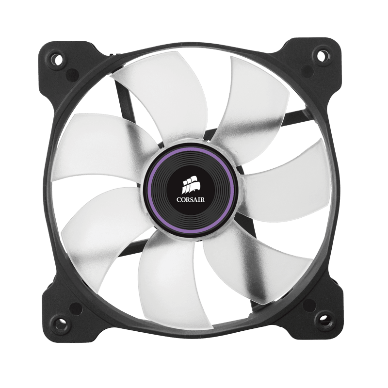 Corsair Air Series LED high static pressure PC case fans combine efficient high pressure airflow with striking LED lighting. They’re custom designed to deliver air directly to high-temperature components with less noise and turbulence than ordinary fans. The custom-molded blades are translucent and have a frosted texture, so the light from the four LEDs adds a dramatic effect.