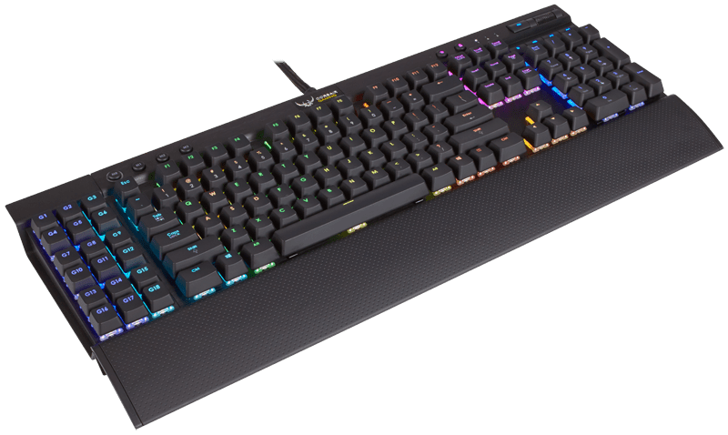 The Corsair Gaming K95 RGB mechanical gaming keyboard begins with the performance of the legendary K95, and adds multicolor per-key backlighting for virtually unlimited customization. Every key is backed with a Cherry MX RGB key switch for precise actuation and superior feel. 122 full key rollover and 100% anti-ghosting ensure accurate gameplay, and the 18 G-keys can hold up to 108 macros for faster gaming.