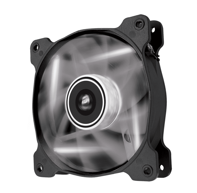 Corsair Air Series LED high static pressure PC case fans combine efficient high pressure airflow with striking LED lighting. They’re custom designed to deliver air directly to high-temperature components with less noise and turbulence than ordinary fans. The custom-molded blades are translucent and have a frosted texture, so the light from the four LEDs adds a dramatic effect.