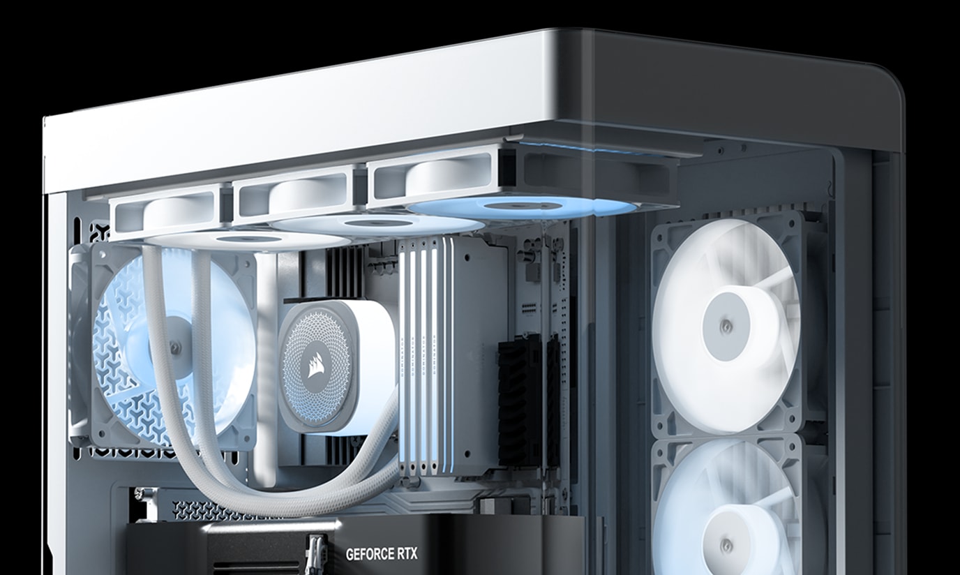 Customize your cooling setup with room for up to 10x 120mm fans, plus versatile radiator mounting options including up to 2x 360mm radiators at the same time.