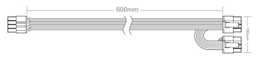 | 3 | PCIe 8 pin (6+2) cable ![]() | 2 | 6 | 600mm, 150mm | 750mm (± 10mm) |