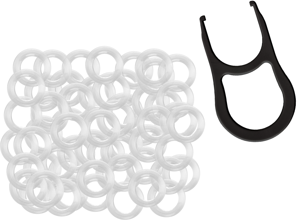 W komplecie znajdują się pełny zestaw nakładek na klawisze, wygodne narzędzie do wyjmowania klawiszy i opcjonalne silikonowe pierścienie, które wyciszają i zmiękczają naciskanie klawiszy.